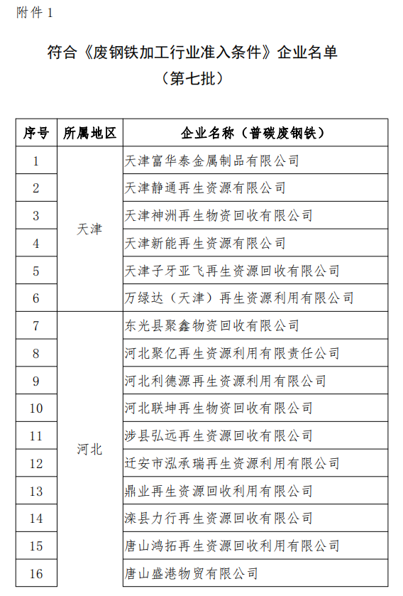 1.符合《废钢铁加工行业准入条件》企业名单(第七批)