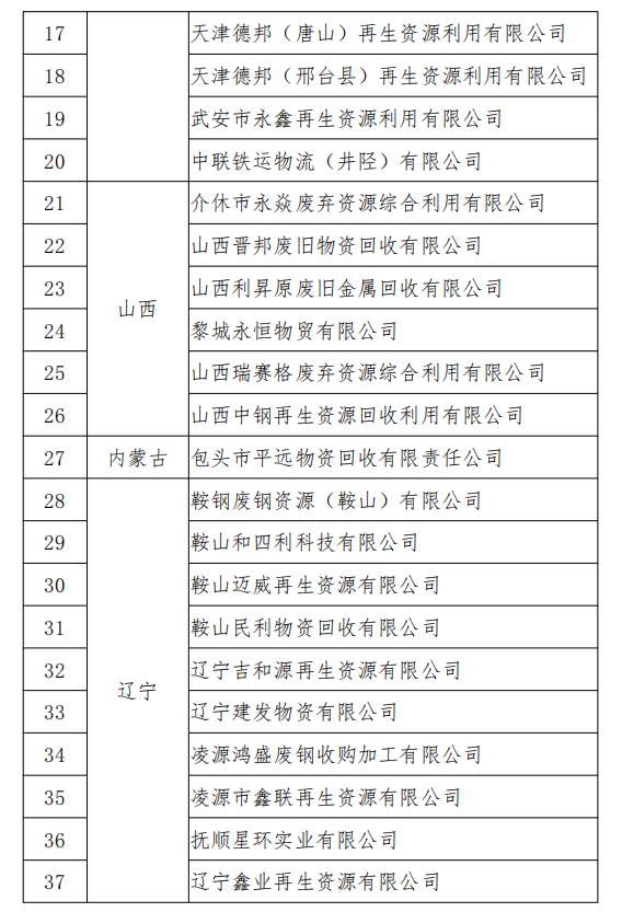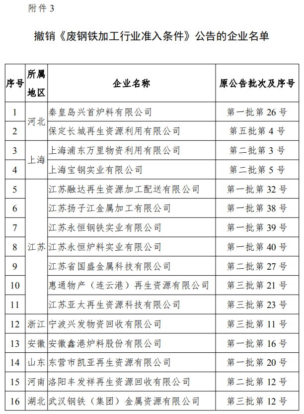 3.撤销《废钢铁加工行业准入条件》公告的企业名单
