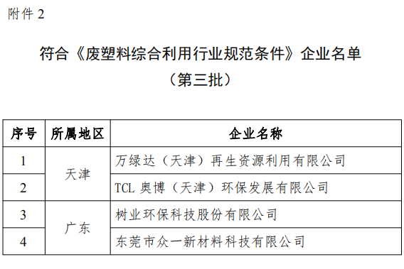 2.符合《废塑料综合利用行业规范条件》企业名单(第三批)