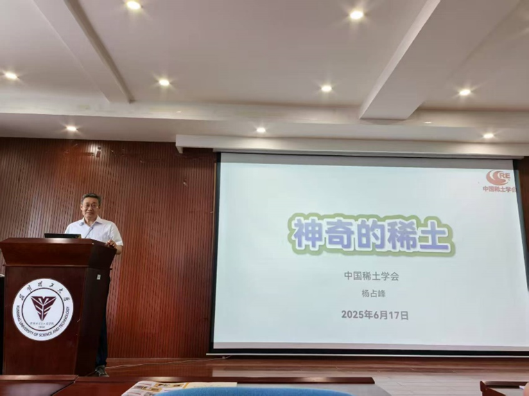 2025年6月17日,中国稀土学会副理事长兼秘书长杨占峰教授以“神奇的稀土”为题,为昆明理工大学材料科学与工程学院师生带去了一场兼具科学深度与前沿视野的科普讲座。活动由材料学院院长冯晶教授主持,学院相关领导、师生及众多稀土科技爱好者共同参与了本次活动。