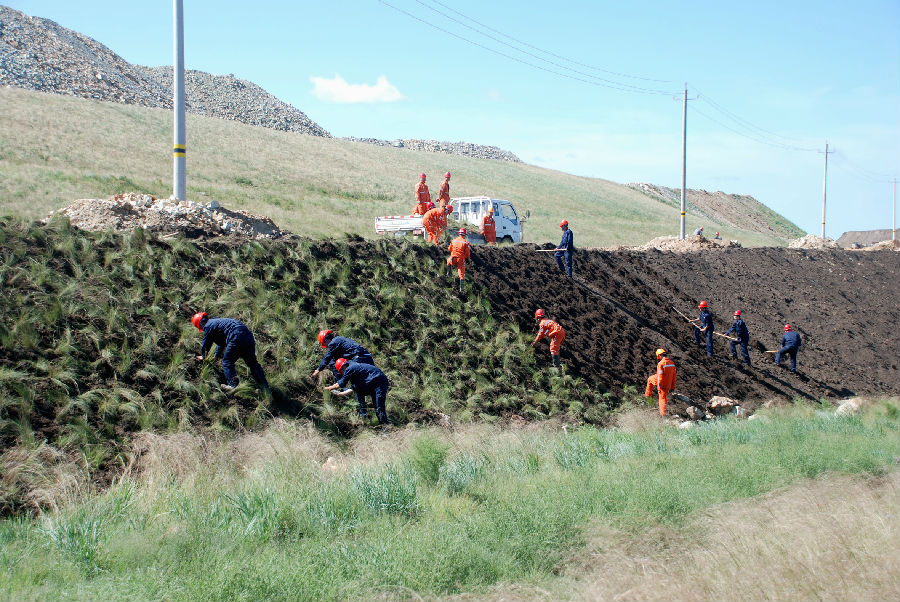 近几年,乌山在矿区内栽种各类树木6万余棵,对内外公路、生活区和营区全部实施绿化。为改善草原生态,在业主的大力支持下投资6000余万元,实施了亮化、美化等配套工程建设。与此同时,按照不同的生态功能作用,将矿山区域内划分为土地复垦区、水土流失治理区、工业场地与道路园林绿化区、草原生态恢复带与景观生态建设区,并开展有特色的绿化美化方式。目前,复垦面积达到200多万平方米,在尾矿库与采场周边多处进行水土流失治理,矿区内可绿化的区域基本全部进行了绿化。“绿水青山就是金山银山”,正是有着这样的理念,指导着项目上下深化绿色矿山建设,把环保工作贯穿于设备选型、施工生产的全过程,不断美化项目驻地、绿化环境,积极改善区域生态环境,打造花园式矿山。
