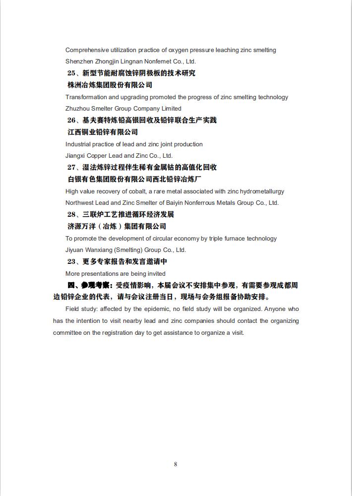 While the epidemic situation is getting serious, how should the world's lead and zinc industry chain take technology as the pivot point, how to fully allocate the supply and demand of lead and zinc mineral resources, how to manage the stock and consumption of spot products and increase the confidence in financial investment, are the tests placed in front of the world's lead and zinc industry. China Non-ferrous Metals Expert decided to hold the 12th (2020) China lead-zinc industry technology annual conference and the world leading lead-zinc specialist forum during September 23 to 25, 2020 in Chengdu, Sichuan province, China, with video conference available. The details are as follows.