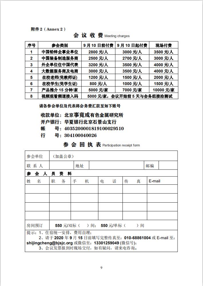 请参会单位和人员务必于 2020 年 9 月 15 日前将参会回执表传真至会务组,以便安排住宿。