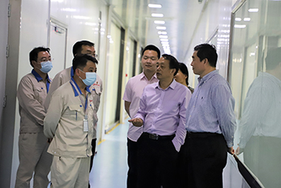 黄存新先后参观了浮法玻璃新技术国家重点实验室、蚌埠中建材信息显示材料有限公司、蚌埠中光电科技有限公司,仔细询问了超薄电子信息显示玻璃、8.5代TFT-LCD液晶玻璃基板的生产工艺、产品用途和市场前景等情况,并对蚌埠院在科研开发、成果转化及产业布局等方面的工作进行了全面细致地了解。他对蚌埠院以科技创新为引领带动中国玻璃行业的高质量转型给予高度评价,表示蚌埠院的转型发展道路令人深受教育和启发,非常值得学习借鉴。