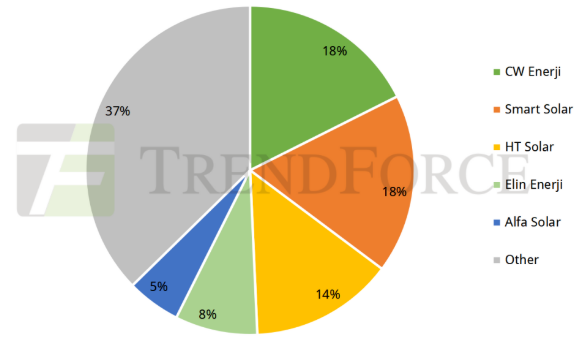 土耳其光伏制造业分布较为广泛,主要分布在西南和西北部。据集邦咨询旗下新能源研究中心集邦新能源网EnergyTrend统计,土耳其当地光伏组件的名义产能已超5GW,其中CW Enerji和Smart Solar为土耳其最大的光伏组件制造商,其名义产能分别约为1GW。当地大部分组件产能由于其地理位置,生产计划尚未受到强烈地震的影响。目前仅有在地震区域的部分小产能组件厂受到影响,GTC(约140MW)、Gest Enerji(约150MW)、Solarturk(约250MW),占到土耳其光伏组件总产能的10%左右。由于当地仍在遭受连续强烈的余震,受影响的企业,其厂房及生产设备受损情况未知,对于复工复产的消息有待进一步的跟踪报道。