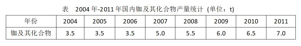 长期以来,世界金属铷的年产量和消费量几百公斤~几吨之间,铷盐年产量及消费量约200t。