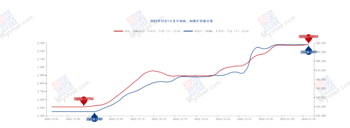 钢材原料价格爆涨,双相钢现货价格水涨船高。22年12月至今钼铁价格涨幅超6.5万元/吨,双相钢主流钢种2205双相钢狂涨3500至32000元附近,直逼21年2205最高价33000元大关。钼价高企,双相钢价格该何去何从?