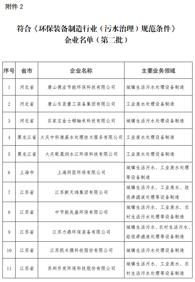 2.符合《环保装备制造行业(污水治理)规范条件》企业名单(第二批)