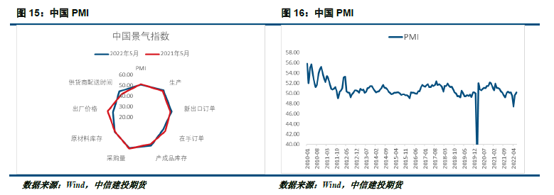 但是在进入二季度之后,一方面是国内疫情的影响,导致主要消费地区出现了两个月左右的停工期,大幅拖累了需求增速,导致显性库存上涨,终端开工率下滑。并且在宏观上,受到全球央行加息政策的影响,流动性收紧的预期打压市场风险偏好,同时,全球主要经济体景气指标均出现了明显边际回落,在基本面与宏观面负面因素的共振下,铅锌在二季度后期出现了加速下跌的走势。