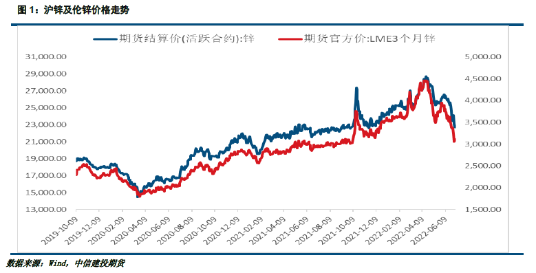 上半年锌价呈现冲高回落的走势。一季度,海外冶炼厂因为能源价格高企压缩炼厂生产利润而减产,同时叠加LME库存显著去化引发市场供应忧虑,锌价在外盘价格的带动下强势上行。从2月下旬开始,俄乌冲突爆发,市场前期对于供应扰动的担忧进一步上升,伦镍出现了极度逼仓行情,锌价也在极端炒作情绪冲快速冲高回落。但是进入二季度后,市场情绪急转直下。主要的冲击来源于美联储的紧缩预期。由于全球通胀压力日益增加,解决通胀问题成为全球央行货币政策的首要决策目标。随着美联储加息节奏的加速,市场利率快速抬升,同时,在进入二季度后国内疫情爆发,终端下游出现了明显的开工下滑,在金融条件收紧叠加消费走弱的双重利空下,整体商品市场都出现了明显下跌,锌价难以独善其身,在二季度末出现了一定补跌行情,但是随着市场情绪的平稳以及产业基本面并未出现明显拐头,锌价在超跌后也出现了明显的反弹行情。