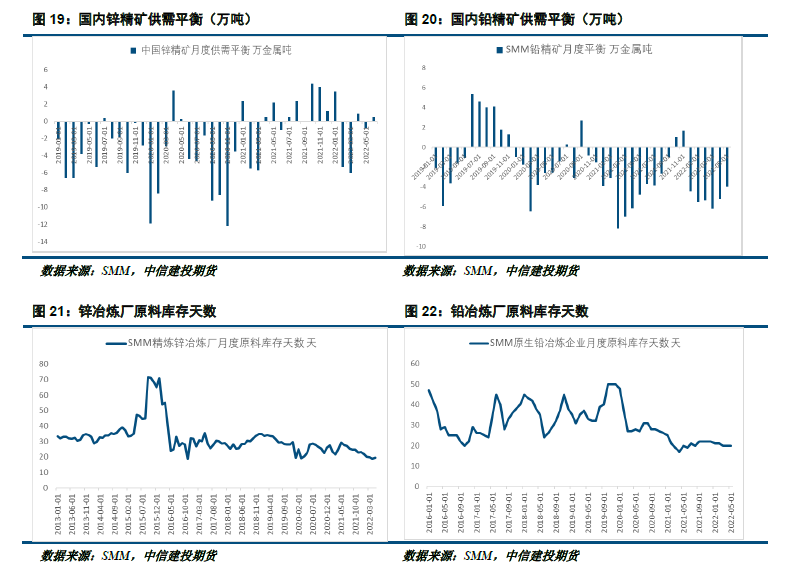对于未来行情,预计市场的关注重心还是在美联储的货币政策上,如果美国通胀持续高位运行,迫使美联储不得不加快紧缩步伐,那将大概率拖累整体金融以及经济增长,同时,当金融市场波动率放大,出现一定流动性风险时,资产将出现类似疫情初期的无差别下跌。但是,如果美联储能够有效控制住通胀,那么利率上行的空间就有限,资产估计受到的冲击也就更小,铅锌定价将更加锚定自身产业基本面。从铅锌的基本来看,锌锭未来收到国内基建以及房地产方面的政策托底,消费的增量将会逐渐走强,同时海外低库存叠加能源价格对成本的支撑,内外共振下,锌锭将将存在局部反弹行情,但受制于整体经济下行趋势难改,下半年运行重心降有所下移。而铅锭由于其再生铅方面的供应弹性,使得价格上涨的幅度有限,预计铅锭依然维持震荡走势。