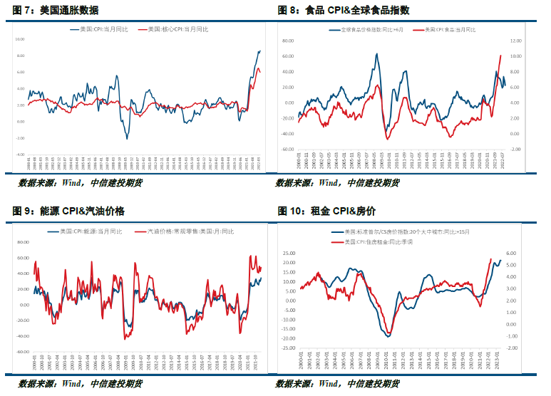 通胀方面,美国通胀数据持续升温,美国5月CPI较去年同期增长8.6%,远超市场预期的8.3%,同时超过3月峰值的8.5%,创1981年12月以来的最大增幅。剔除波动较大的食品和能源价格后,核心CPI环比上涨0.6%,同比上涨6%,涨幅均高于市场普遍预期。具体来看,当月美国能源价格环比上涨3.9%,同比大幅攀升34.6%,创2005年9月以来最大同比涨幅。其中汽油价格环比上涨4.1%,同比猛涨48.7%。食品价格环比上涨1.2%,同比上涨10.1%,这是该指标同比涨幅自1981年3月以来首次超过10%。 另外,占CPI三分之一比重的住房租金同比上涨5.2%,创1987年以来最大涨幅,这意味着通胀大幅升温已经广泛影响到美国各个经济领域。美劳工部当天公布的另一份数据显示,剔除通胀因素后,美国5月实际员工平均时薪环比下降0.6%,同比更大幅减少3%。