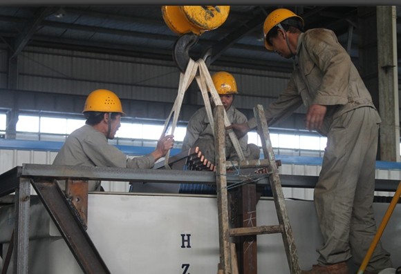 接着,林董事长带着我们进车间参观了电解槽的成套设备。其中,引人注目的是工人们正在对供应电解槽、树脂电解槽、聚脂树脂电解槽、树脂整体浇铸电解槽的阳极板进行打包出口,目的是方便运输、降低运行成本。
