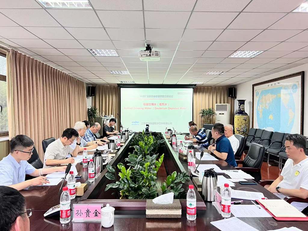 7月27日下午,中国矿业联合会召开《包装饮用水(低氘水)》标准立项专家审查会。江苏奥特泉超轻水饮料有限公司代表标准编制单位就编制背景、标准适用范围和主要内容等方面向评审组进行了汇报。来自清华大学、中国原子能研究院、中国疾病预防控制中心等单位9位行业专家出席会议。以费维扬院士为组长的评审专家组围绕标准立项可行性及标准编制工作进行了研讨和评议,并同意通过立项。