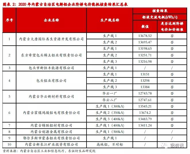 第三条阶梯电价从2020年内蒙古自治区工业和信息化厅公布的情况来看电解铝企业均未达到阶梯电价加价标准,因此今年大概率也不在加价行列之中。第四条关于差别电价的实施情况仍需等待二季度后自治区工信部的具体公布结果,预计电解铝企业加价概率不大。