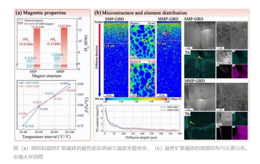 安徽大学材料科学与工程学院王守国教授团队联合北京工业大学及稀土永磁材料全国重点实验室,围绕高丰度稀土磁体重稀土晶界扩散技术展开深入研究,首次揭示影响重稀土扩散效率的两大关键微观机制。相关成果日前发表于《先进功能材料》。