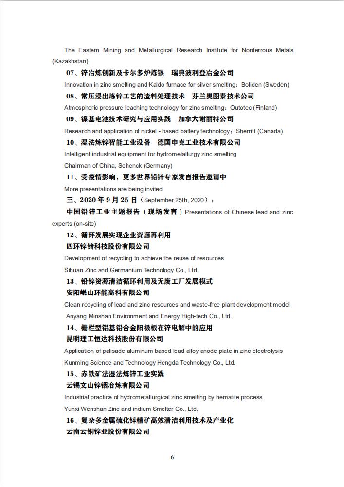 面对疫情持续走高的局势,世界铅锌产业链如何以技术为支点,充分配置铅锌矿产资源供需、现货产品存量消费以及金融投资的信心,是全世界铅锌工业共同期待的考验。为此,中国有色金属专家网决定于 2020 年 9 月 23~25 日在四川省成都市举办“2020 年第十二届中国铅锌工业技术年会暨世界铅锌顶级专家视频论坛”。现将具体事项说明如下。