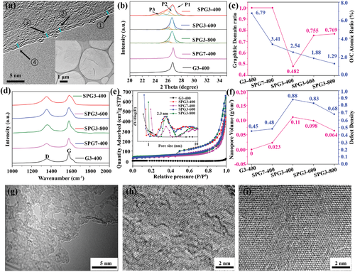 对石墨烯基材料的结构调控进行改善离子插嵌、扩散性能对其应用和发展非常重要,比如在铝离子电池领域。由于AlCl4–离子的半径较大,基于石墨烯的阴极的比容量局限在≈60~148 mAh g-1,因此限制了铝离子电池的发展。有鉴于此,昆士兰大学余承忠、Xiaodan Huang,昆士兰科技大学杜爱军等报道了一种热还原穿孔TRP(thermal reductive perforation)策略,在400 ℃中能够将三层石墨烯转化为表面穿孔型石墨烯材料。在该TRP过程中,通过共聚物的热分解产生活性自由基,消耗氧同时生成石墨烯。得到的材料表现为三层,表现为面内多孔结构,层间距扩大>50 %,相对于≈3000 ℃中煅烧合成的石墨烯,这种石墨烯中的含氧量更低。当作为铝离子电池阴极,在2 A g-1电流密度中的可逆容量达到197 mAh g-1,达到理论容量的92.5 %。
