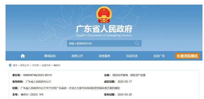 3月20日,广东省人民政府发布《广东省进一步加大力度支持民间投资发展实施方案》。方案提到,涉及政府配置资源的能源类开发计划,原则上要提前向社会公开,并向民间资本推介。支持民营企业投资建设抽水蓄能、新型储能、太阳能发电、风电、充电桩等能源类项目,不得在布局规划、指标安排、资源出让、核准(备案)手续办理、并网运营等方面对民间投资设置附加条件和歧视性条款。