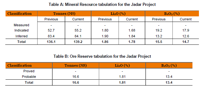 力拓(Rio Tinto)日前向澳大利亚证券交易所(ASX)披露了其在塞尔维亚西部100%持有的Jadar锂项目的最新资源情况,该项目现有1660万吨矿石储量的推测资源,包括1.81%的氧化锂和13.4%的氧化硼,具体情况如下: