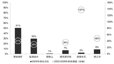分类型锂资源供给占比及2022-2025年增速