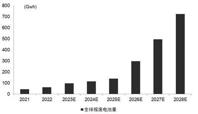 2021—2030年世界报废电池量预测