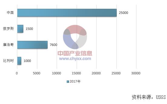 2017年世界主要国家砷产量分析(单位:吨)