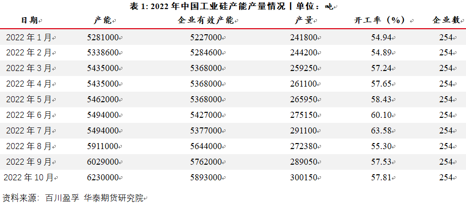 据百川,截至2022年10月30日,中国工业硅总产能623万吨,其中有效产能589万吨,工业硅总炉数702台。