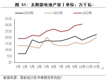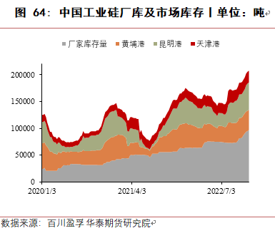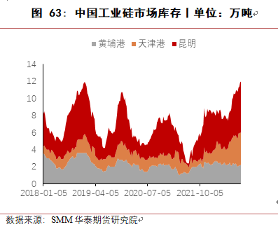 2022年四季度及2023年一季度,枯水期西南地区会有一定减产,西北地区由于交通受阻,预计新增产能提产有限,因此供应端会有减少,但消费端受多晶硅增产带动,预计库存会小幅下降。二季度后,随着西北地区新增产能投产,西南地区丰水期电力供应增加,产量将会增加,累库现象会再次出现,一直维持至四季度。