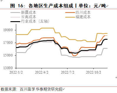 从不同生产地区来看,目前新疆地区仍是成本最低的地区,云南与四川在丰水期也具有优势。