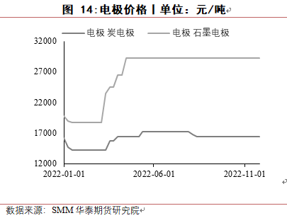 对于电极,2022年电极价格有较大涨幅,主要受原料成本上涨影响,2023年价格有望回落。