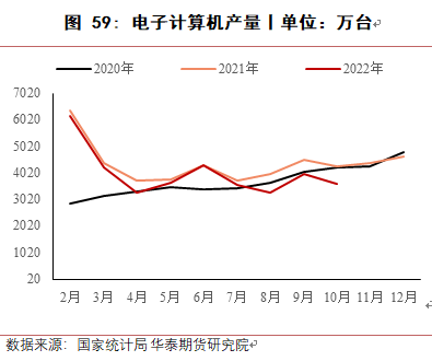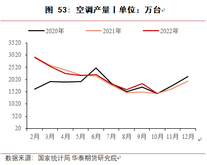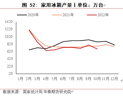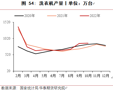 电子电器领域,2022 年耐用消费品受地产疲软、出口回落等因素影响整体订单表现较为一般。据国家统计局数据,2022 年 1-10 月空调累计产量 18959.5 万台,同比增长 3.2%。1-10 月冰箱累计产量 7159 万台,同比下降 3.3%。1-10 月洗衣机累计产量 7318 万台,同比增长3.7%。出口方面表现较弱,主要受海外局部地区地缘冲突和经济下行影响,外需相对不足。
