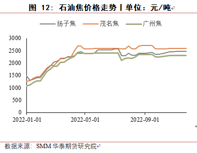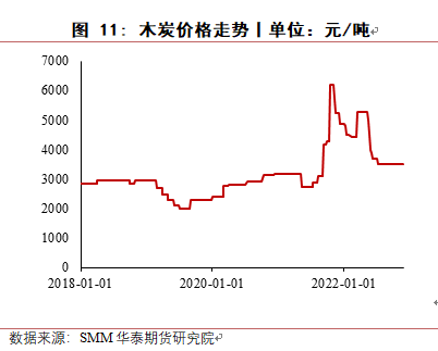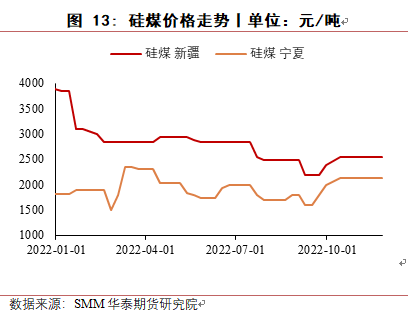 对于还原剂,硅煤使用较多,2022硅煤价格有所回落,但下半年西部地区交通运输受影响较大,供应一直比较紧缺,适合做工业硅冶炼的硅煤也较少,未来价格也难有较大回落空间。木炭价格今年也有所回落,但国内仅云南使用少量木炭作为还原剂,影响较小,2022年石油焦价格呈上涨趋势,明年价格有望回落。