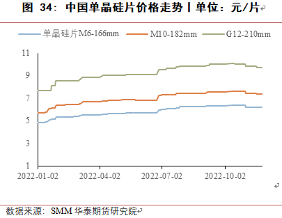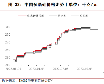 需求端多晶硅产量仍将保持较高增速,因此上半年供应相对偏紧,同时叠加枯水期电力成本较高,预计价格将处于较高位置。2023年下半年,新增产能投产较多,预计产量会增加较多,将出现一定过剩,且新增产能基本位于西北地区,对于水电季节性影响有一定减弱。