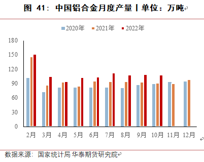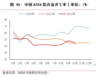 铝合金领域对工业硅消费相对保持稳定,从开工率来看,中国A356铝合金今年开工率与去年相比有较明显下降,原生铝合金开工率基本与去年持平,近两个月无明显提升。从产量端来看,根据国家统计局数据,2022年1-10月,中国铝合金产量合计997.2万吨,同比增长13.2%;铝材1-10月累计产量5132.5万吨,同比减少2.0%,综合来看,铝合金对工业硅消费量保持小幅增长。