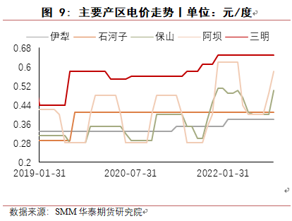 但近几年来,自备电厂需要上网,同时其他行业对水电消耗增多,整体电价上涨,电力成本明显增加,导致工业硅生产成本增加较多。另一方面,由于美国涉疆法案对原料也会追溯,因此西北其他地区例如内蒙、甘肃、宁夏,这几年新增产能较多,产业分布格局也在发生一定变化。