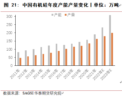 2023年,预计有155万吨单体投产,但由于有机硅产能已处于过剩阶段,新增产能投产后,行业开工会进一步降低,预计2023年全年有机硅产量增长会在10%左右,合计对工业硅消费在100万吨左右。