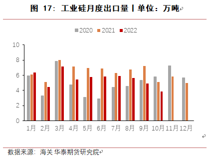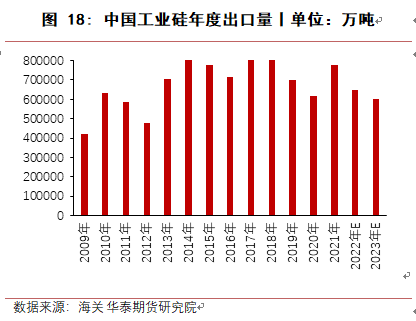 对于进口,从海关数据来看,每年仅有几千吨进口量,且多为出口退货,因此中国工业硅基本不进口。