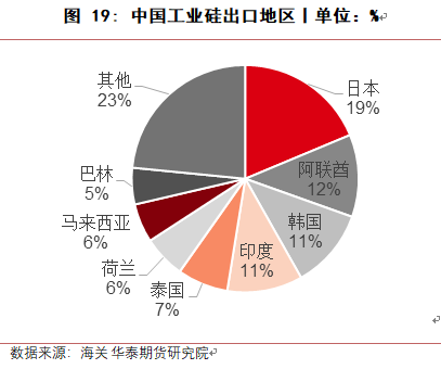 从出口地区来看,未来美国、欧盟等地区针对中国工业硅出口的高额关税不会轻易取消。工业硅主要出口目的地仍是以日韩为主,而东南亚及中东地区也有很大潜力。