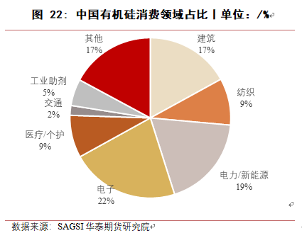 从消费终端来看,有机硅终端消费领域主要有建筑、电子电器、电力新能源、纺织、医疗与个人护理、工业助剂以及交通等领域。