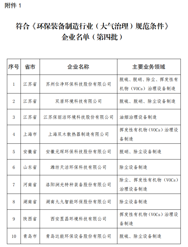 1.符合《环保装备制造行业(大气治理)规范条件》企业名单(第四批)