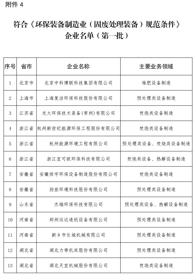 4.符合《环保装备制造业(固废处理装备)规范条件》企业名单(第一批)