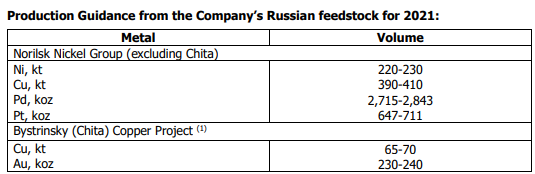 2020年第四季度,镍的综合产量比上一季度增长13%,达到6.8万吨,几乎全部来自公司自己的俄罗斯原料(6.7万吨,环比+12)。增长归因于Kola MMC镍精炼厂,该厂正在使用新的氯浸技术,待售镍精矿产量的增加以及上一季度(诺里尔斯克镍业Harjavalta精炼厂成立时)的较低基数效应。