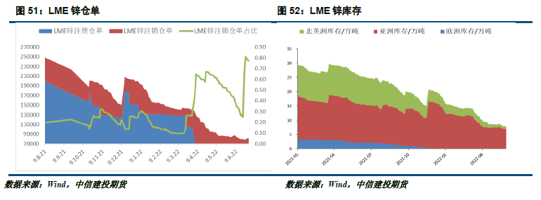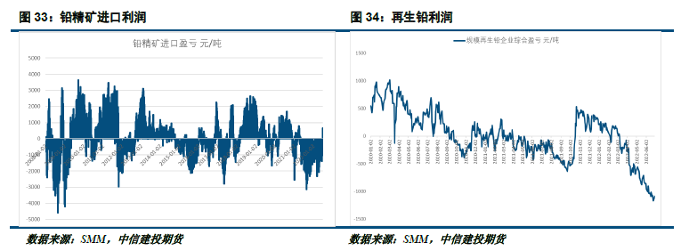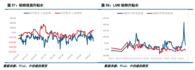 从国内现货升贴水情况来看,国内锌现货在去库周期中较强,与盘面结构保持一直,维持在升水结构中;而铅则由于整体供应相应充足,现货一直处在完全贴水的情况下;海外市场而言,锌由于存在软逼仓的行情,现货溢价波动较为剧烈,但是铅的现货溢价基本保持平稳,也反映出海外市场的铅锭供应相应充沛。