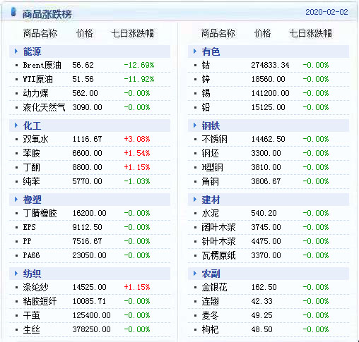 【商品价格七日涨跌榜】